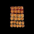 Состав: рис, нори, соус для запекания, креветка, унаги, кунжут